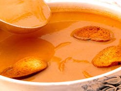 * Puis, le repas proprement dit s'ouvrait avec un potage, une crème, ou un consommé, toujours servis en tasse, froids ou chauds, selon la saison.