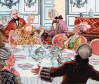 A condition d’avoir averti ses invités à l’avance, toutes les options sont possibles : du signe discret (une ceinture, un accessoire) au « vrai « déguisement, en passant par le costume approximatif « dans le style », ou par le « dîner de têtes » illustrant coiffures et couvre-chefs.