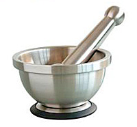 Aïoli dans un mortier en marbre ou une jatte de porcelaine.