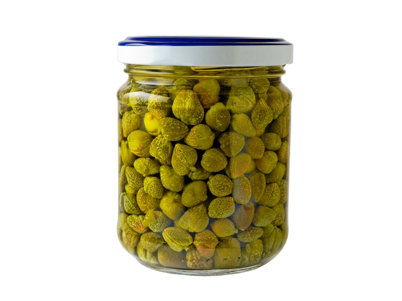 Récoltée entre Mai et Octobre, la câpre s'achète confite dans le vinaigre ou conservée en saumure.