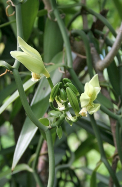 La vanille est une épice provenant d'une liane de la famille des orchidées pouvant atteindre, à l'état sauvage 15 m de long.