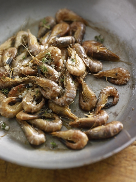 Fraîchement pêchée, cuite sur le bateau, la crevette grise se déguste telle quelle, en amuse-bouche.