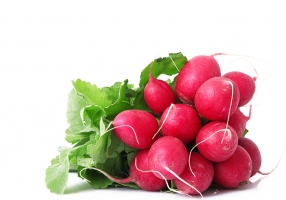 - radis rose : petite racine charnue, allongée ou toute ronde, blanche et rose ou rouge plus ou moins foncé, accrochée à une touffe de feuilles velues