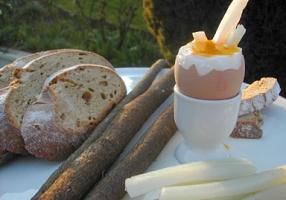 - Décolleter le chapeau, déposer une pincée de sel et servir rapidement, accompagné d’un petit fagot de scorsonères et des mouillettes de pain également.