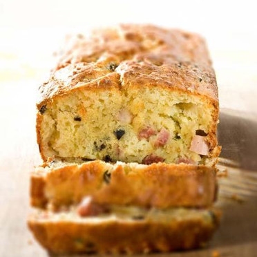 - Dans un saladier, mélanger énergiquement la farine, la levure, les œufs, le beurre fondu et le lait. Détailler le jambon en petits dés.