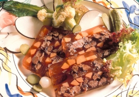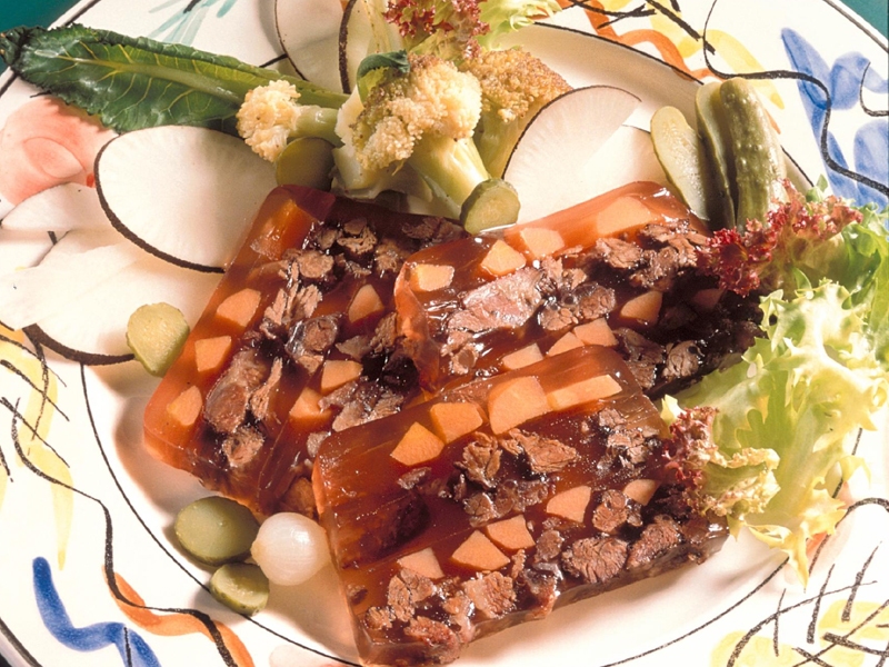 - Mettre la viande dans une terrine, verser le jus, tasser, laisser refroidir complètement, puis mettre au réfrigérateur pendant 12 heures.