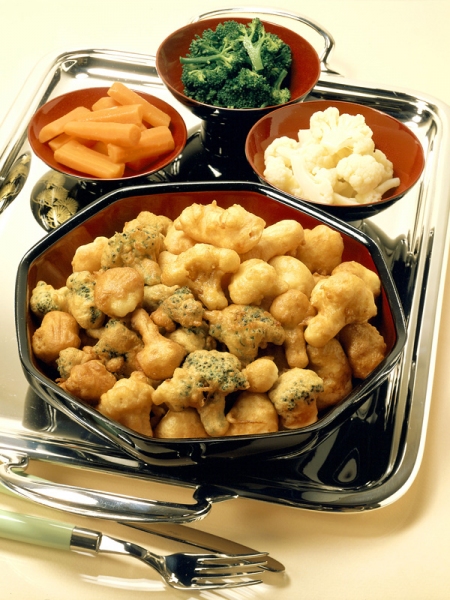 - Enrobez les légumes de pâte, plongez-les par 4 ou 5 dans la friture.