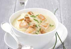 - Servez votre crème de ratte du Touquet au jus de dinde et marrons aussitôt.