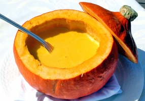 - Couper le potiron et le faire cuire avec le beurre et un peu d'eau pendant 20 minutes.