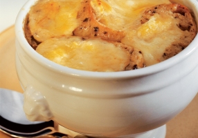 - Verser le bouillon et faire gratiner sous le grill du four.