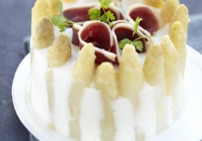 - Chemisez une charlotte en inox avec les têtes d'asperges.