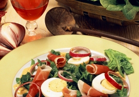 . Les disposer sur une assiette puis ajouter le jambon de Bayonne détaillé en larges lanières.