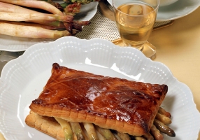 - Le dédoubler et posez quelques asperges nappées de sauce.