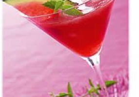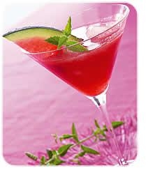 - Décorer avec des fruits et une feuille de menthe.