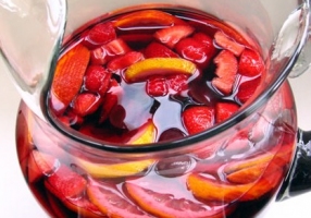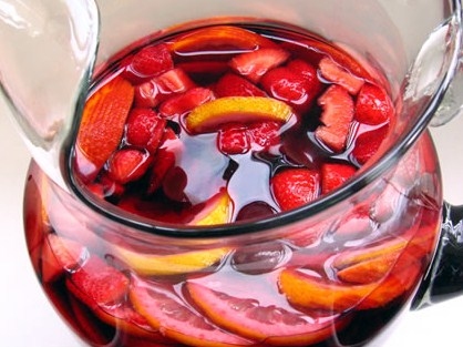 - Verser dans un grand contenant creux le vin rouge et l'eau gazeuse.