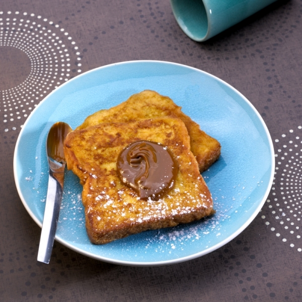 - Déposer les tranches de brioche dans de petites assiettes à dessert, les saupoudrer de sucre glace et accompagner de la confiture de lait.