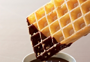- Recouvrir les gaufres de ganache au chocolat tiédie et déguster aussitôt saupoudrées de sucre glace.