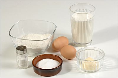 - Tamiser la farine, la disposer dans un saladier, creuser un puits, ajouter le sel, le sucre et les oeufs.