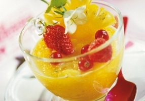 - Ajouter les groseilles égrappées, les fraises lavées, séchées, équeutées et les framboises.