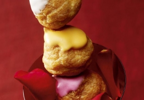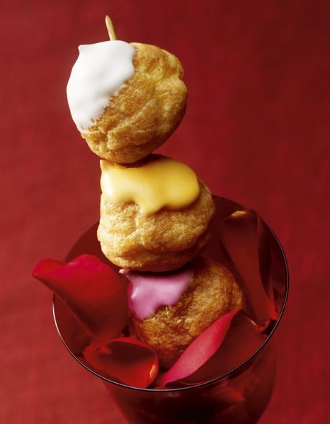- Décorer les choux avec le glaçage: blanc pour la vanille, orangé pour la passion et rouge pour le gingembre.