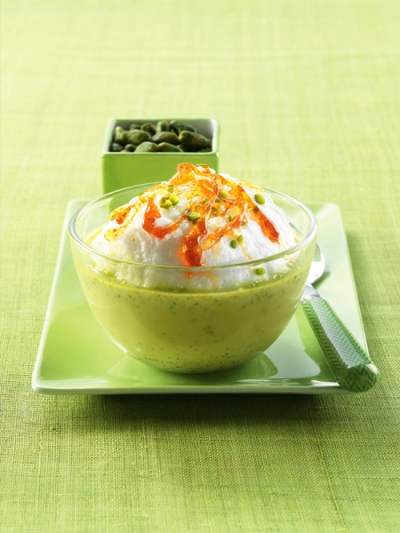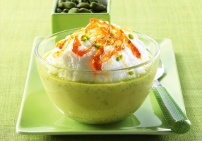 - Au-dessus d'un bol, filtrer la crème et finir d'écraser les pistaches afin de bien lier le tout.