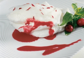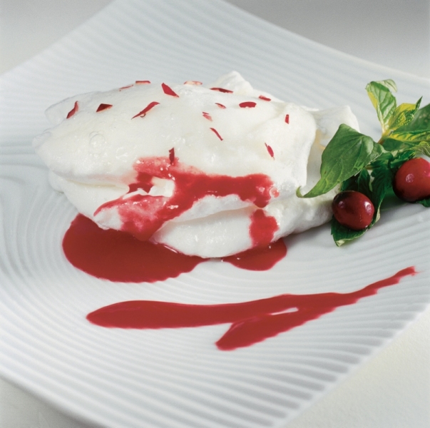 - Dans de petites coupes individuelles, verser du coulis de fruits rouges.