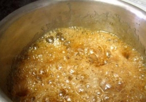 - Dans une casserole, faire fondre le sucre en poudre avec un peu d'eau.