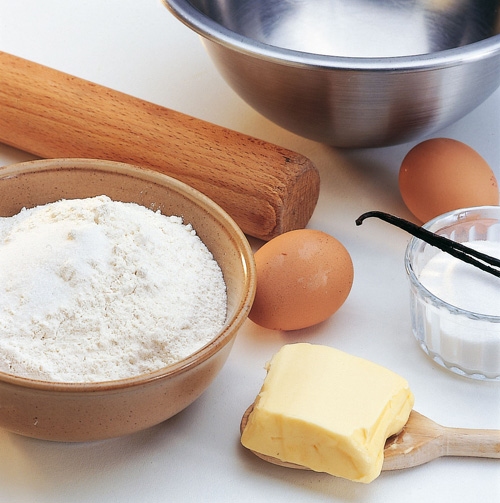 - Déposer la farine sur un plan de travail propre, ajouter le sucre et le beurre ramolli en petits morceaux, mélanger délicatement l'ensemble afin d'enrober le beurre dans la farine.