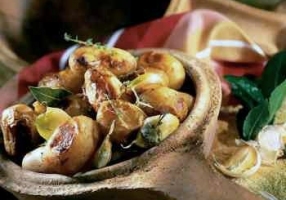 - Ranger les pommes de terre dans le diable en alternant les gousses d'ail.