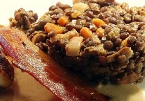 - Ajouter la crème fraîche au jus de cuisson et aux lentilles prélevées.