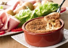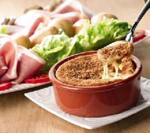 - Pour un plat unique, ce camembert chaud se déguste avec du jambon.
