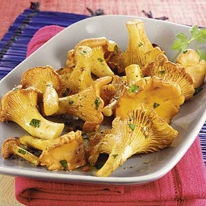Servir les girolles chaudes avec sa sauce de cuisson.