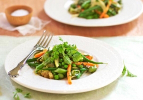 - Y mettre les carottes coupées en rondelles, les navets taillés en dés, les haricots verts, les petits pois, la laitue et les pommes de terre.