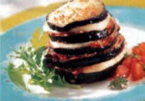 - Dans un plat à gratin, poser 4 tranches d'aubergine.