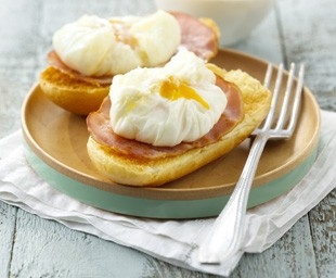 - Poser un œuf sur chaque tranche de pain au dessus de la tranche de bacon.