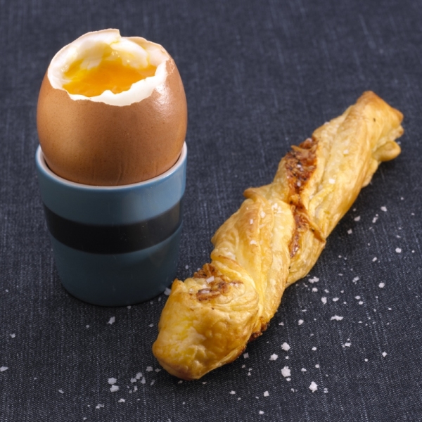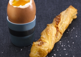 Servir l'oeuf, le déguster en y plongeant les sacristains.