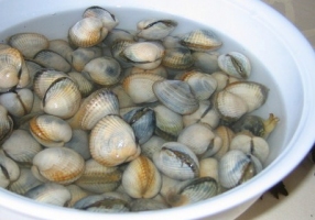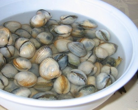 - Laisser dégorger 12 heures les coques dans l'eau salée.