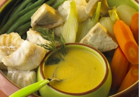 Déguster la morue et les légumes accompagnés de l'aïoli !