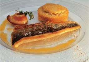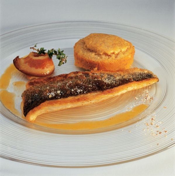 - Dresser les filets sur assiettes chaudes parsemés de fleurs de sel, accompagnés des gâtelets de sarrasin et d'un cordon de jus fumé.