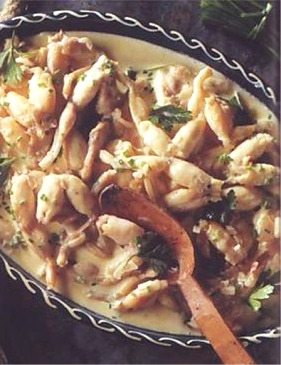 - Dresser les cuisses de grenouilles sur un plat de service chaud.