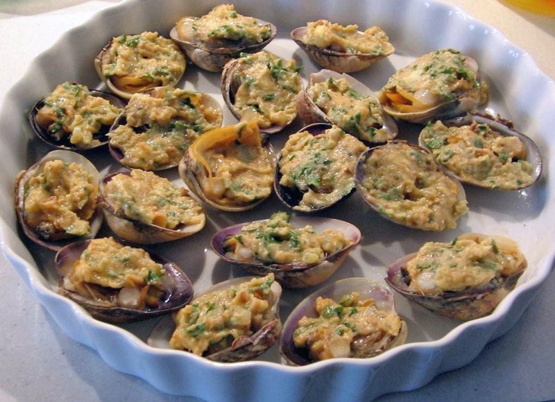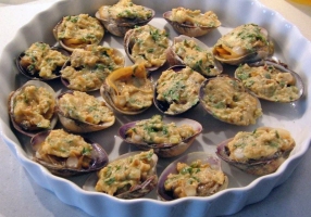 - Verser la farce obtenue dans les palourdes et saupoudrer de chapelure.