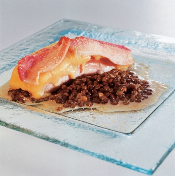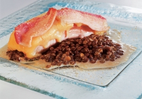 Dresser les pavés de saumon sur un lit de lentilles et servir chaud.