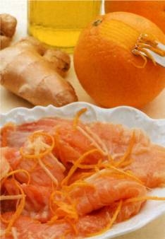 - Laisser mariner dans l'huile d'olive le gingembre et le zeste d'orange durant 2 heures.