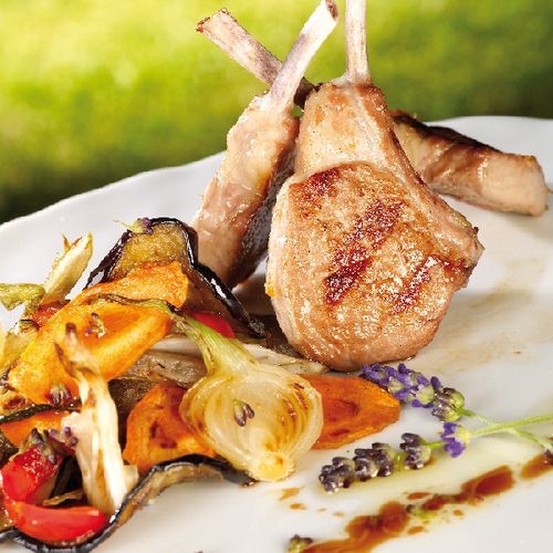- Dresser sur assiette les légumes, les côtes d'agneau et le reste de la vinaigrette.