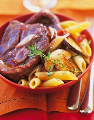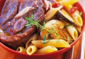 Odeurs de sous-bois, saveurs de fin d’été. Servez un vin rouge puissant et charpenté aux tannins fondus. Les notes de fruits mûrs tapissent le palais. Le mets s’y enfonce voluptueusement. La viande se pare des notes épicées du vin, la tomate et l’oignon libèrent les notes vives du vin, les cèpes confèrent à la finale des soupçons de sous-bois. Cela suffit pour des sensations vraies. Jouez la carte du Sud-ouest avec des vins bien structurés ou de la Méditerranée. Si vous jouez sur la fraîcheur, servez un rosé de type septentrional : ses notes vives et fruitées rafraîchiront le palais qui en redemandera !
