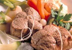 Présenter en même temps la viande (chacun coupera son morceau en tranches), les légumes et un choix de condiments.