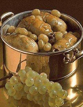 - Sortir les cailles de la cocotte pour en retirer la barde et les remettre dans la sauce en ajoutant les raisins et le marc.