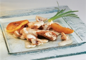 - Disposer à l'assiette la préparation d'émincés de veau nappée de crème aux champignons.