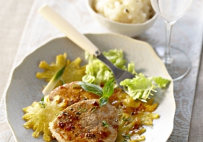 Servez les grenadins accompagnés de l'ananas caramélisé et de la purée de céleri.