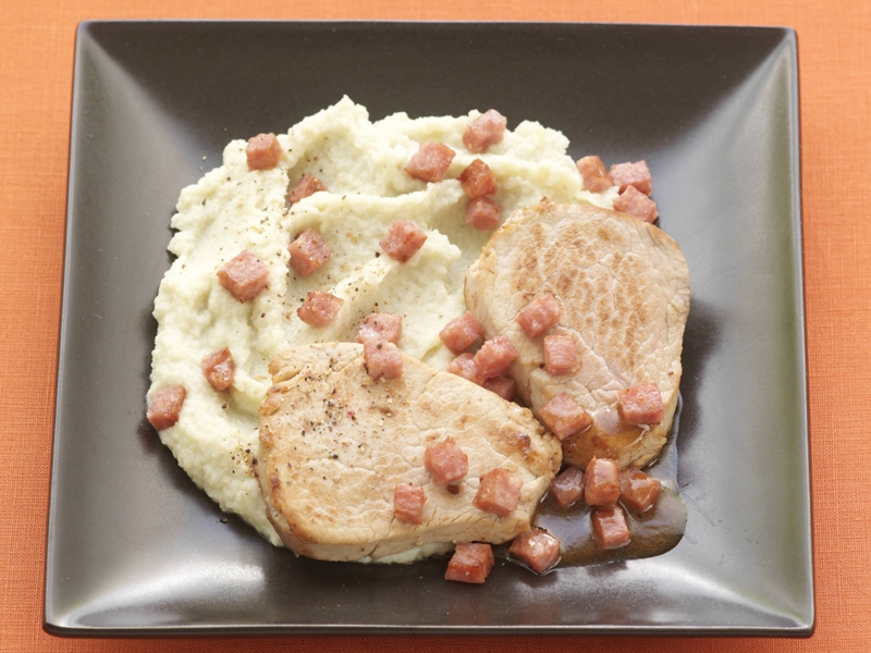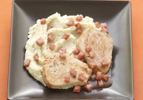 Poser dessus le médaillon de veau, parsemer le tout de dés de Morteau et arroser de jus de citron.